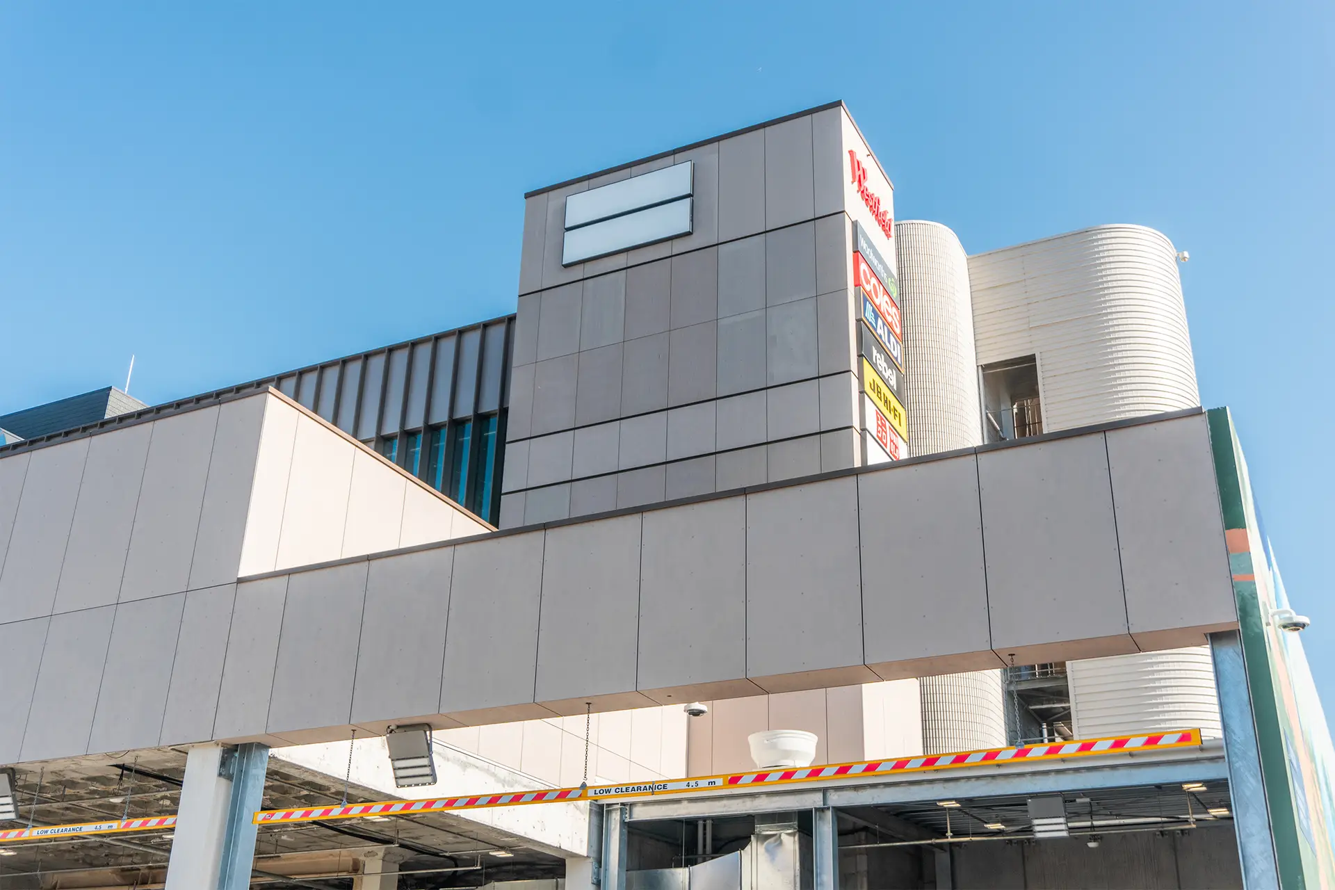 This project featured a diverse range of cladding solutions for the shopping centre’s exterior, incorporating aluminium panels, timberlook aluminium battens, and Equitone cladding to achieve a modern and durable facade.